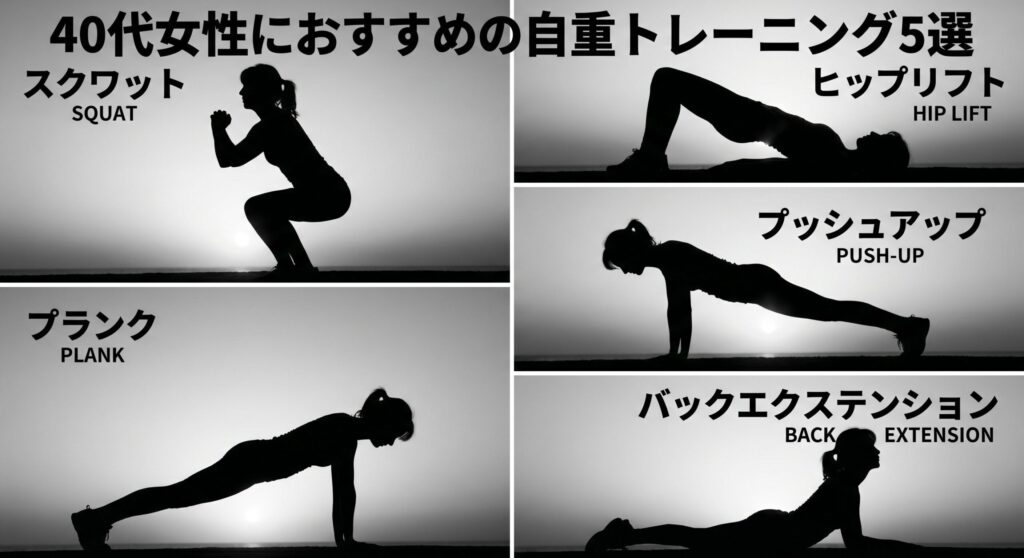 - 効果: 40代は姿勢が崩れやすく、背面の筋肉を鍛えると姿勢改善・腰痛予防にも効く