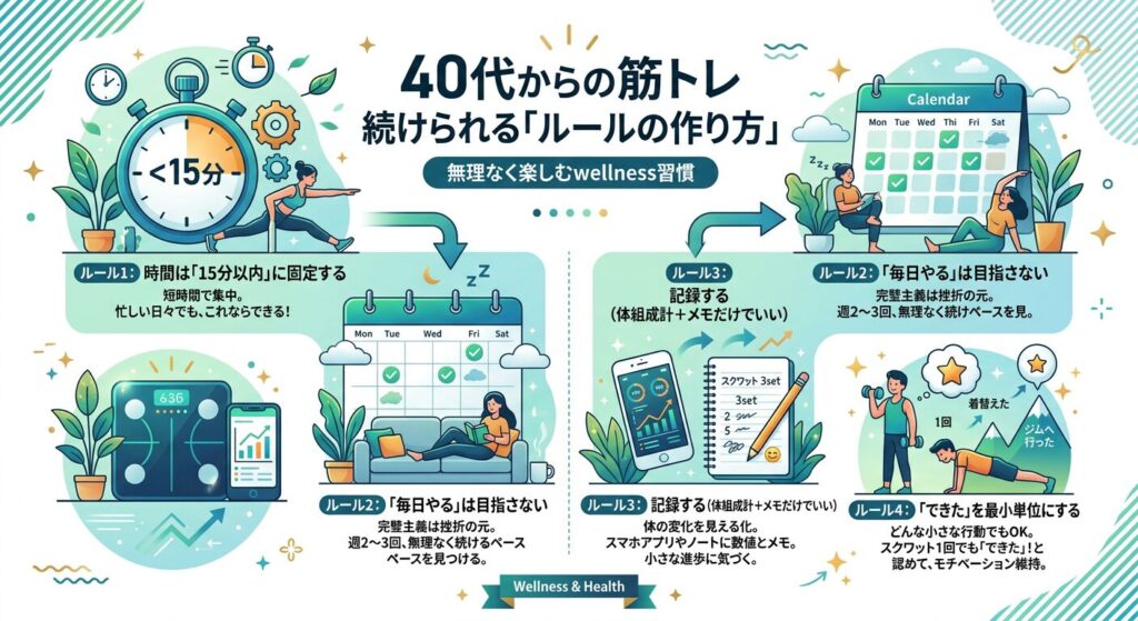 まとめ:40代女性の自宅筋トレは「設計」が9割