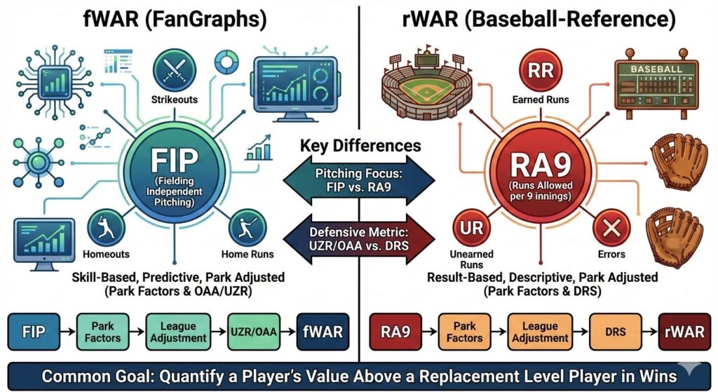 WARには主にfWAR(FanGraphs WAR)とrWAR(Baseball Reference WAR)という2種類があります。