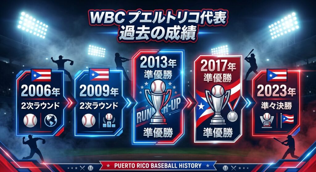 プエルトリコのWBC過去5大会の戦績は以下のとおりです。