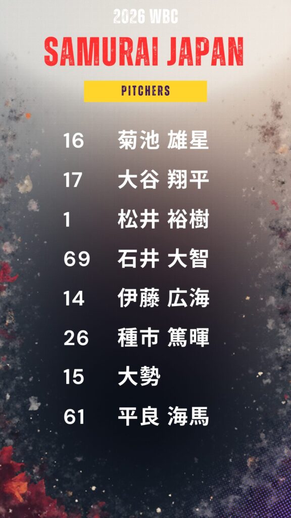 2025年12月26日にWBC出場メンバー8人が先行発表されました。
